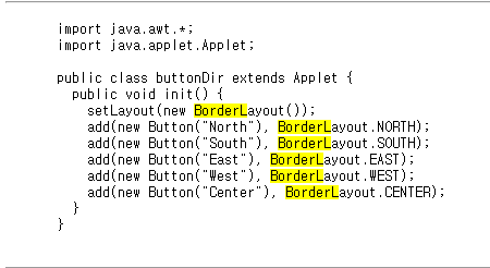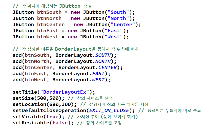 // 각 생성한 버튼을 BorderLayout을 통해서 각 위치에 배치