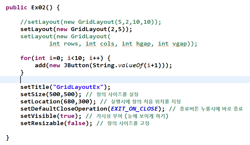 setDefaultCloseOperation(EXIT_ON_CLOSE); // 종료버튼 누를시에 바로 종료