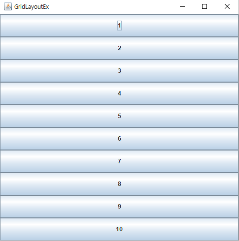 현재 10개의 JButton을 생성하고