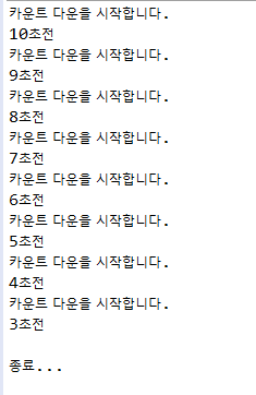 System.out.println("카운트 다운을 시작합니다.\n" + i + "초전");