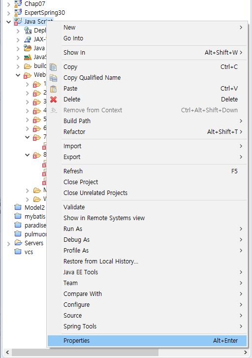 각 이클립스에 연동된 톰캣 버전으로 확인
