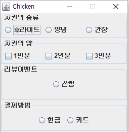 private JRadioButton rbtnSoySauce; // 간장치킨