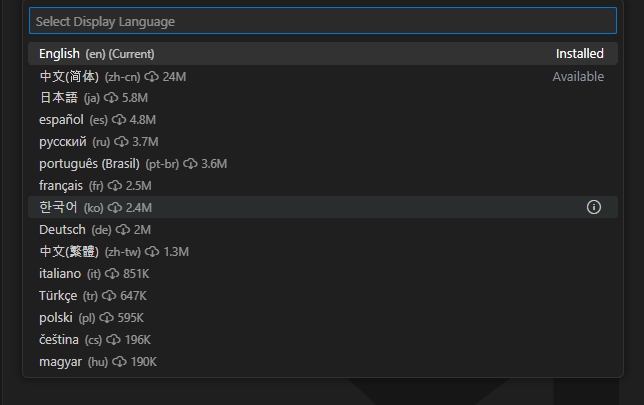 아마 재시작하라고 알림이 나올텐데 재시작하면 선택한 언어로 vsc를 자동 재실행하게 됩니다.