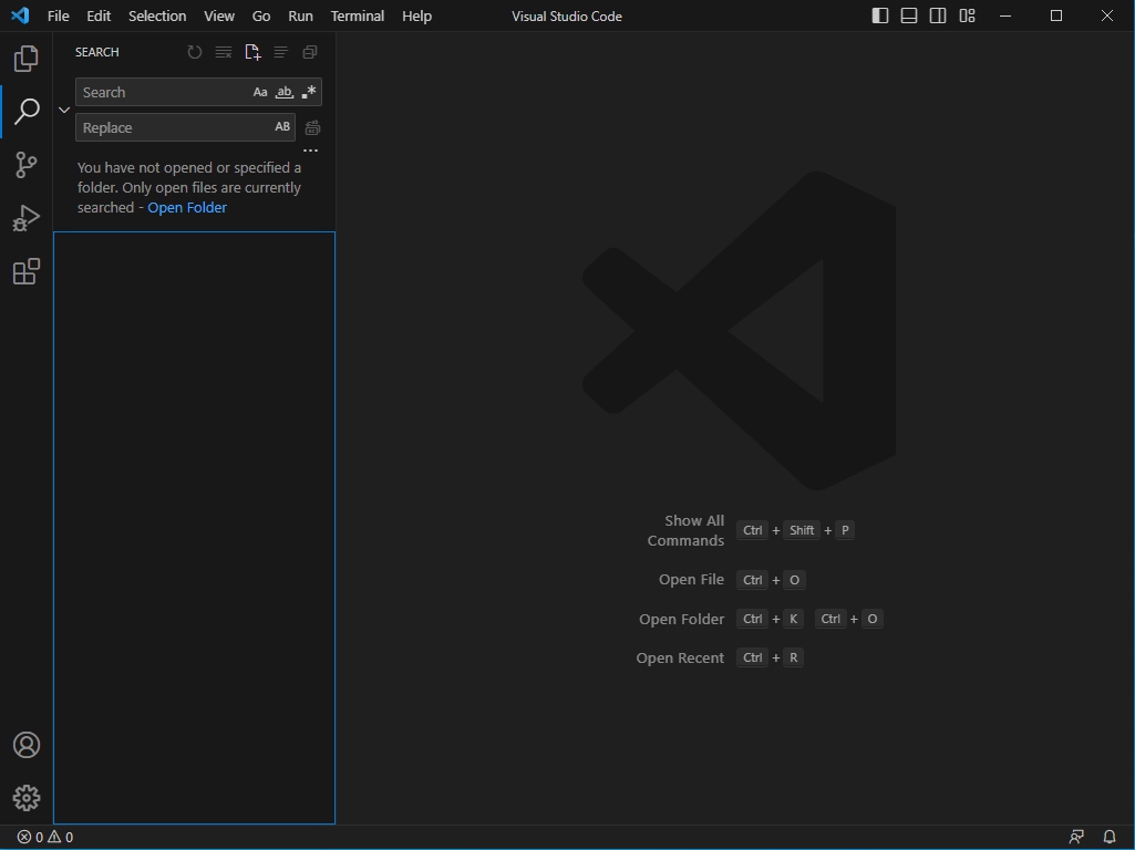 처음 Visual Studio Code를 설치하면 아래와 같이 기본적으로 언어가 영어로 설정되어 있습니다.