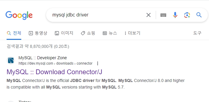 1. "mysql jdbc driver" 검색