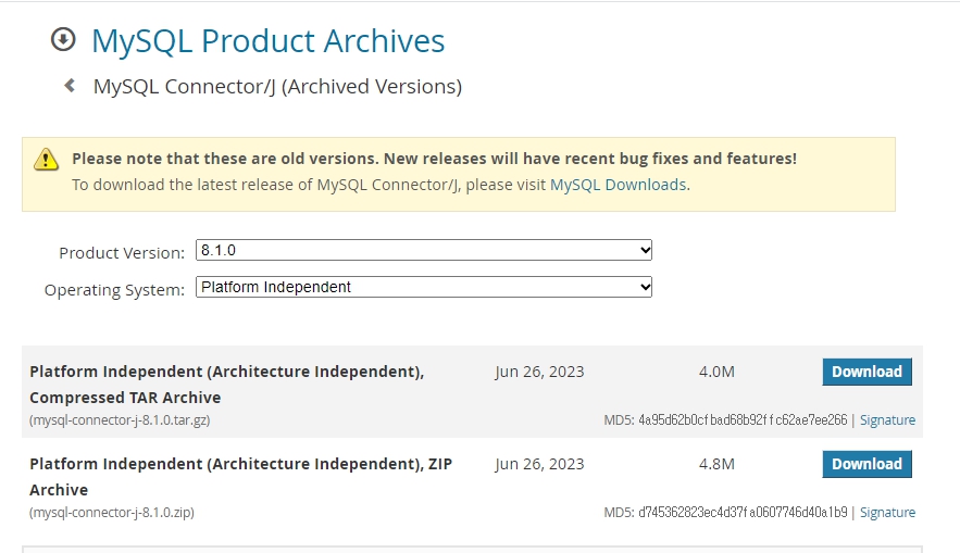 2. https://dev.mysql.com/downloads/connector/j/