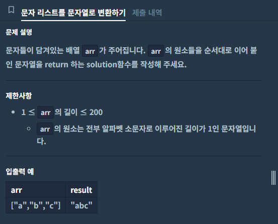 문자열이 담겨있는 배열 arr가 주어집니다. arr의 원소들을 순서대로 이어 붙인 문자열을 return 하는 solution함수를 작성해 주세요.